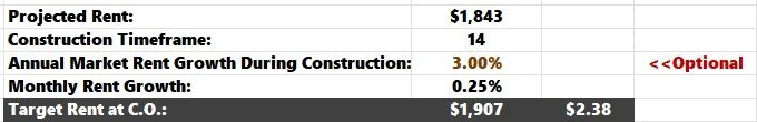 A few customers brought to my attention that construction can take years, and market rents tend to inflate (especially in 2021). I begrudgingly added this toggle, but with a huge disclaimer: Please use this assumption responsibly.