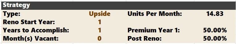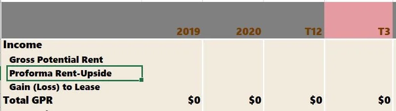 Ensure you unhide “Proforma Rent - Upside” if you underwrite a rental premium.