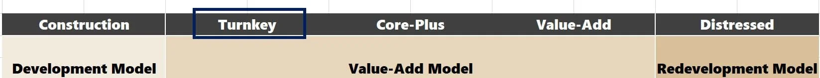 The model I use for class “A” proforma underwriting is the Tactica Value-Add Model. I think about the quality/condition of apartments on a sliding scale. “Value-Add” doesn’t mean the model can only handle Value-Add properties. It means it is helpful on any assets ranging from turnkey to value-add.